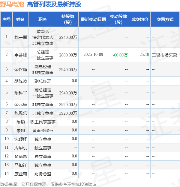 野马电板近半年内的董监高及中枢技艺东说念主员增减合手细目如下: